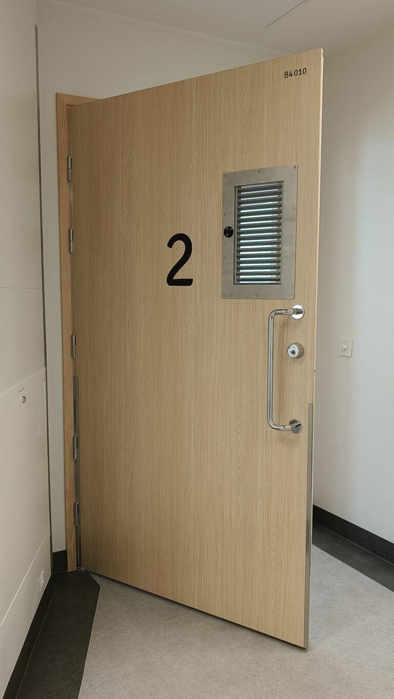 Hotellihuoneisiin suunnitellut huoneisto-ovet luovat käytävälle yhtenäisen ilmeen, eristävät ääntä, ovat paloturvallisia ja kestävät jatkuvaa käyttöä.